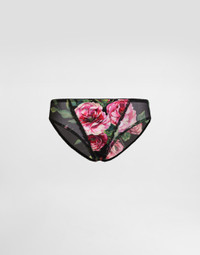 The Women’s DNA Collection is introducing a new side to femininity, which comes in shades of rose quartz, poised between sheerness and opacity, lightness and structure, formality and sensuality. Geometric Dolce Jackets, jacquard pajamas and floral brocade dresses intertwine with ultra-romantic designs. The DG print becomes an iconic statement, while Cordonetto lace and hints of Sicily Black embody the essence of a determined yet romantic femininity. Rose-print silk satin and tulle panties with lace details: • Multi-colored • Elasticated leg openings on the front only • Regular fit • Made in Italy Given the product characteristics, unfortunately some items in the underwear category cannot be returned. For more information, please consult the Returns and Refunds section. The difference in the print placement that you may find on this product is a feature of Dolce&Gabbana’s “Handmade” pieces. A detail that makes every garment or accessory unique and exclusive. External composition: 65% Silk 20% Polyamide 10% Spandex 5% Cotton Internal composition: 90% Polyamide 10% Spandex