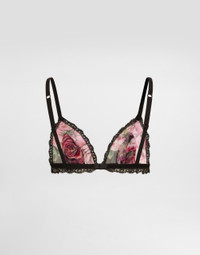The Women’s DNA Collection is introducing a new side to femininity, which comes in shades of rose quartz, poised between sheerness and opacity, lightness and structure, formality and sensuality. Geometric Dolce Jackets, jacquard pajamas and floral brocade dresses intertwine with ultra-romantic designs. The DG print becomes an iconic statement, while Cordonetto lace and hints of Sicily Black embody the essence of a determined yet romantic femininity. Antique rose-print silk satin and tulle triangle bra with lace details: • Multi-colored • Thin adjustable straps • Adjustable hook-and-eye fastening on the back with 3 positions • Made in Italy The difference in the print placement that you may find on this product is a feature of Dolce&Gabbana’s “Handmade” pieces. A detail that makes every garment or accessory unique and exclusive. External composition: 45% Polyamide 40% Viscose 5% Cotton 5% Spandex 5% Polyester Internal composition: 90% Polyamide 10% Spandex