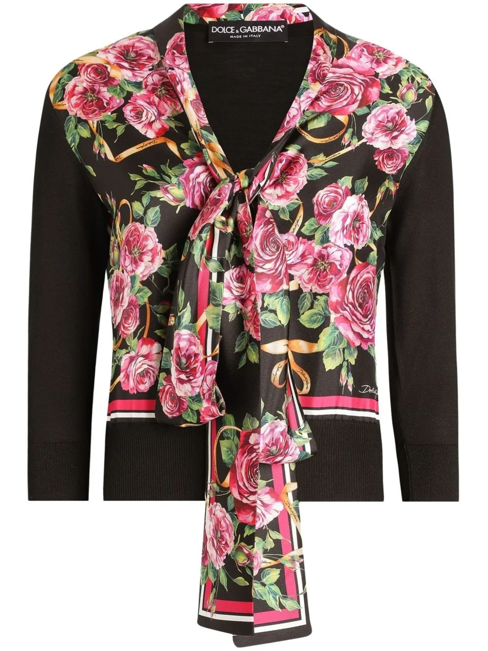 rose-print sweater Highlights - Black - Front tie fastening - V-neck - Long sleeves - Ribbed-knit edge Made in Italy Composition Silk 100%