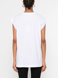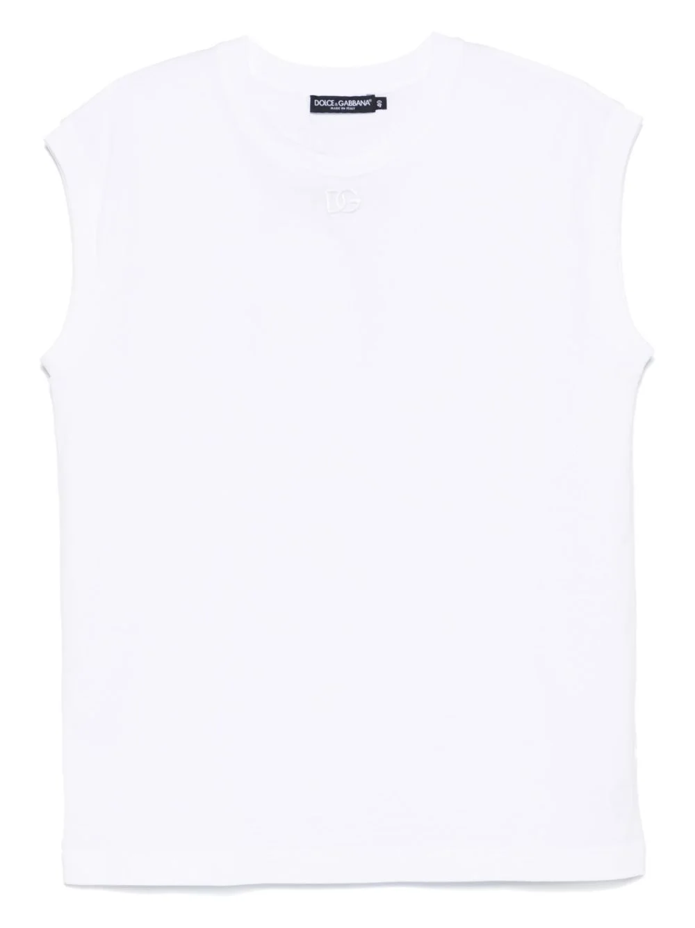 round-neck sleeveless top Highlights - White - Round neck - Sleeveless - Cotton - Subtle logo detail Made in Italy Composition Cotton 100% SIZE & FIT Model measurements Height 5 ft 10 in(1.77 m) Bust/Chest 33.07 in(84 cm) Hips 37 in(94 cm) Waist 24.8 in(63 cm) FittingInformation Designed to be unstructured, offering a loose fit throughout Made from a midweight non-stretch fabric, this piece offers minimal elasticity when worn Washing instructions Machine Wash
