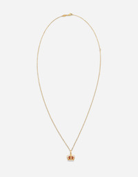 The necklace is distinguished by the pendant, which consists of a crown-shaped element with a red jasper cushion that features two rubies and a sapphire set at the base. An oval tag bearing the DOLCE&GABBANA logo is placed before the closure. Technical features: Gold 750/000 Length: 55 + 10 cm adjustable Gems: 1 red jasper; 2 round rubies; 1 round blue sapphire. External composition: Yellow 18 kt Gold
