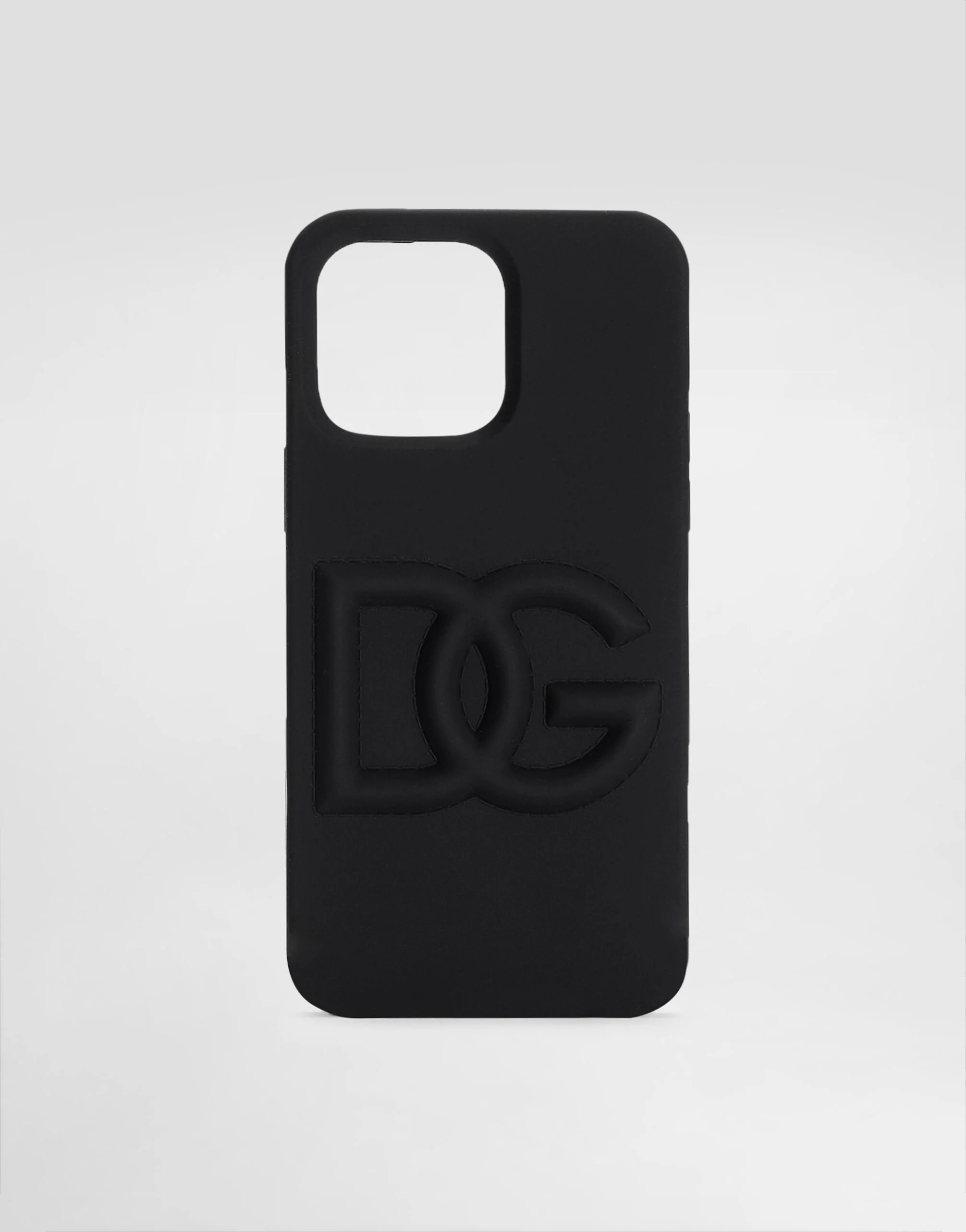 This iPhone 14 Pro Max cover is made entirely from rubber and customized with an embossed DG logo. Rubber iPhone 14 Pro Cover with DG logo: • Black • Opening for the camera and side buttons • Measurements: H16 x W7.2 x D1 cm • Made in Italy External composition: 100% Silicone