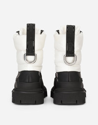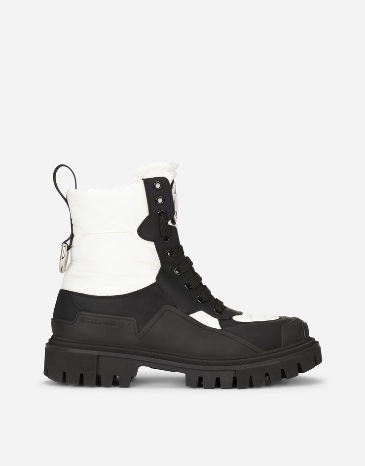 In the “DG Next” collection, the iconic black and white is given a modern and contemporary edge, creating a new mode of self expression, yet while always maintaining our own identities and unique qualities. These casual hi-trekking boots come in down-padded nylon with rubberized calfskin details and feature the rubberized DG logo: • Nylon and rubberized calfskin upper • Flat laces • Calfskin footbed with branded label • Rubber sole • Item comes with themed packaging • Made in Italy Care And Details Composition: 48% Polyester 40% Calfskin 8% Polyamide 4% Polyurethane