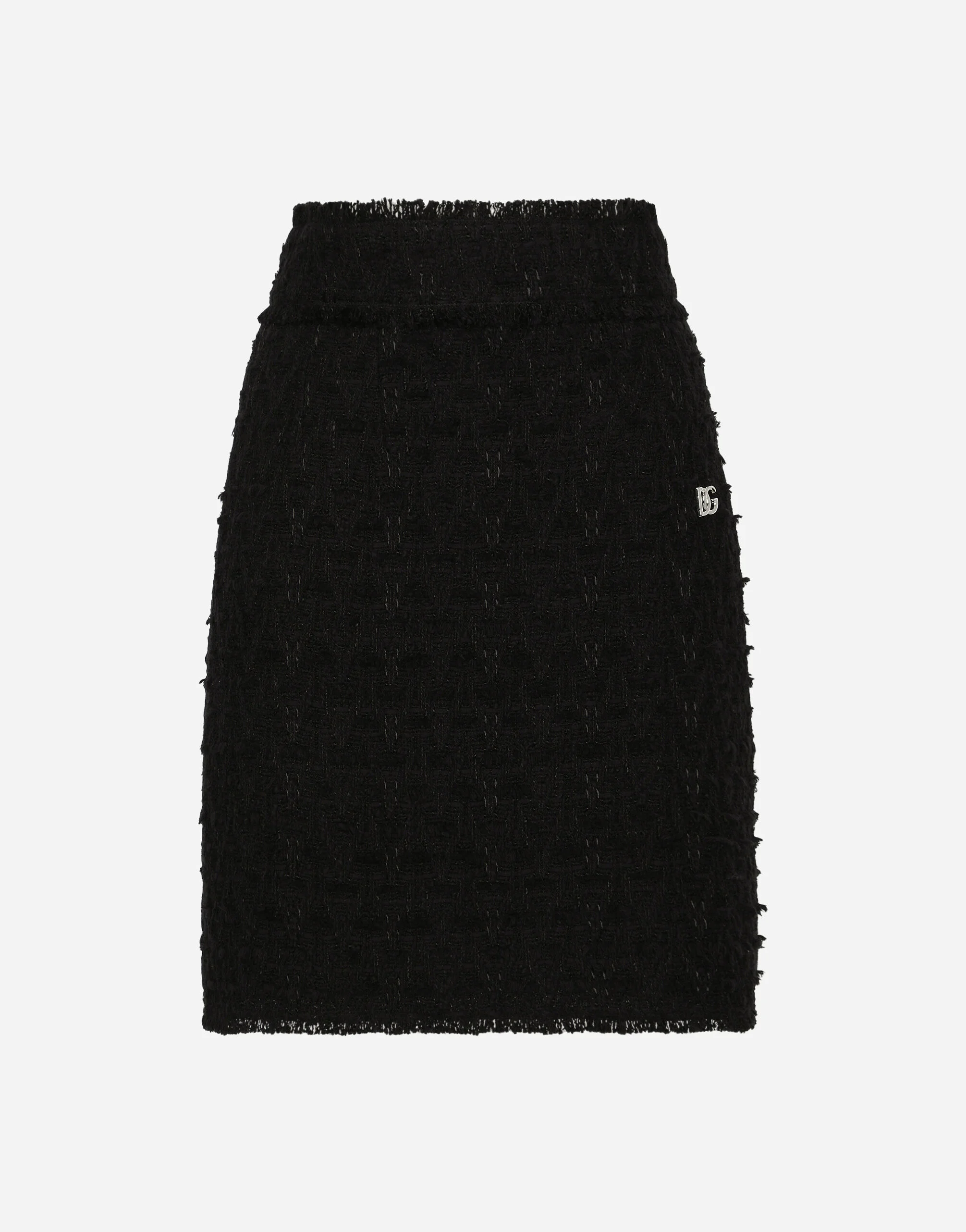 Rush-stitch skirt with side slit: • High-waisted • Stretch silk satin lining • Rear zipper and hook-and-eye fastening • The piece measures 45 cm from the waist down on a size IT 40 • The model is 175 cm tall and wears a size IT 40 • Made in Italy Care And Details External composition: 76% Cotton 28% Viscose 4% Linen 1% Polyamide Internal composition: 92% Silk 8% Spandex