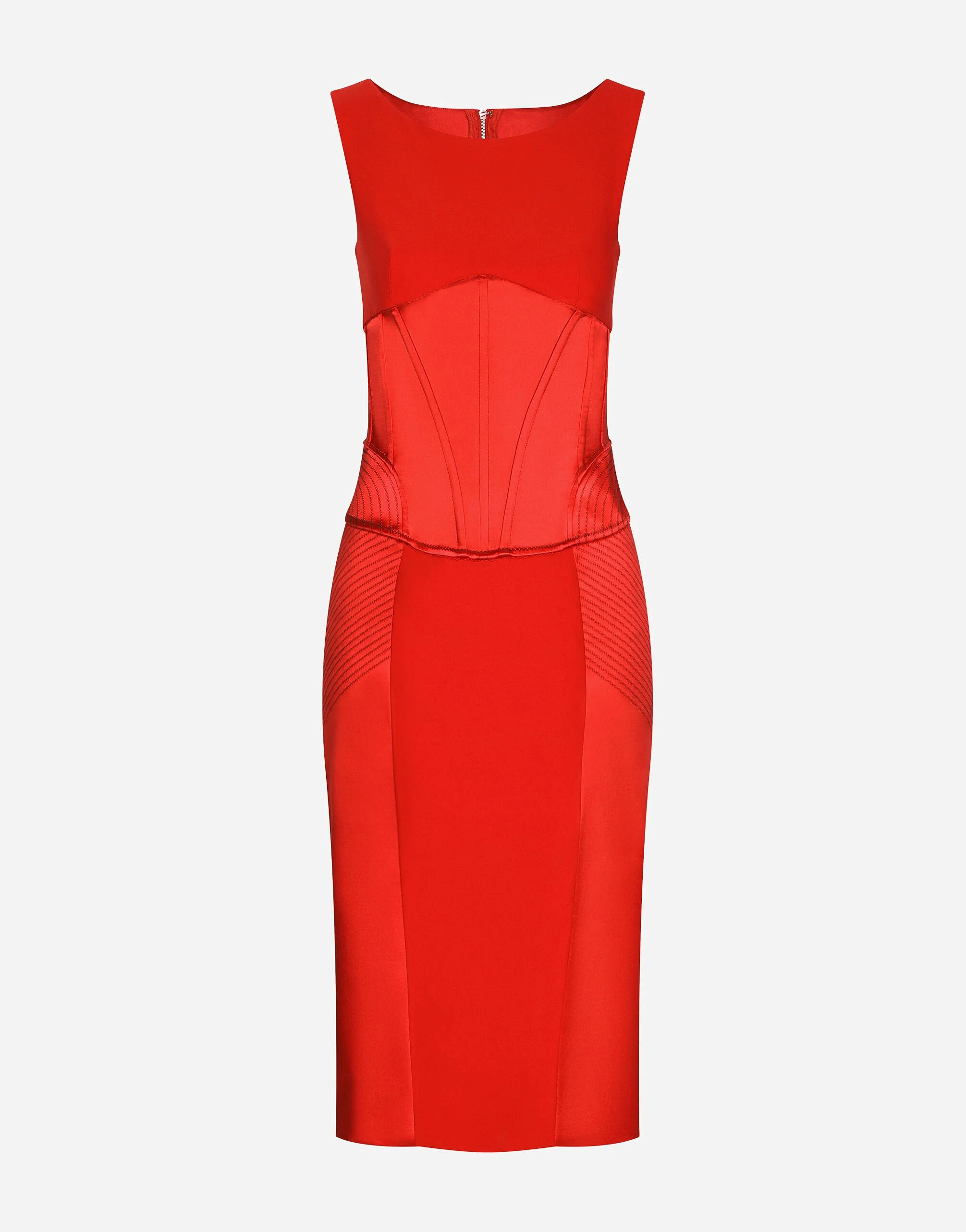 Satin and cady calf-length dress: • Round neck • Sleeveless • Stretch silk satin lining • Rear zipper and hook-and-eye fastening • The piece measures 107.5 cm from the center back on a size IT 40 • The model is 175 cm tall and wears a size IT 40 • Made in Italy Care And Details External composition: 65% Acetate 29% Polyamide 6% Spandex Internal composition: 92% Silk 8% Spandex
