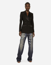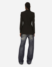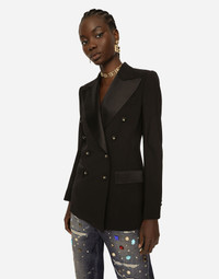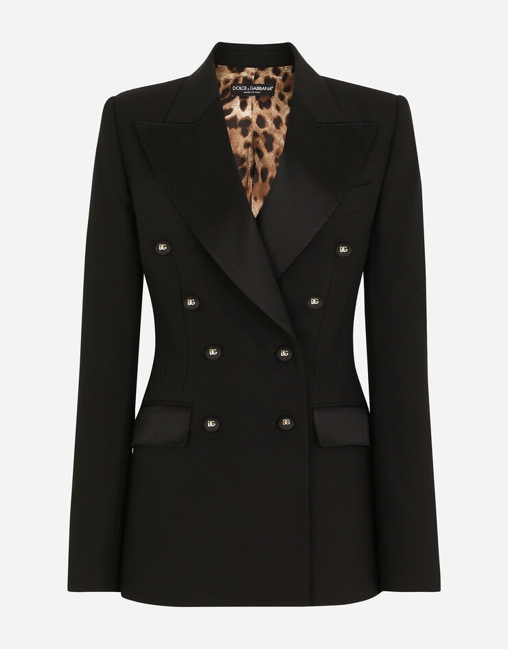 • Peak lapels • Long sleeves • Flap pockets • Leopard-print stretch satin lining • Button fastenings covered in silk canneté with DG logo • The piece measures 70 cm - 27.6 inches from the rear collar seam on a size IT 40 • The model is 175 cm - 68.9 inches tall and wears a size IT 40 • Made in Italy Care And Details External composition: 81% Virgin Wool 14% Silk 04% Polyester 01% Spandex