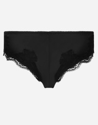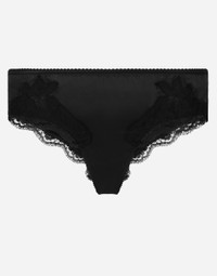 Der Slip aus elastischem Seidensatin mit Einsatzen aus Baumwollspitze bleibt auch unter sinnlichen Looks unsichtbar und ist angenehm zu tragen. • Elasticated leg openings on the front only • Regular fit • Made in Italy External composition: 80% Silk 12% Cotton 5% Spandex 3% Polyamide