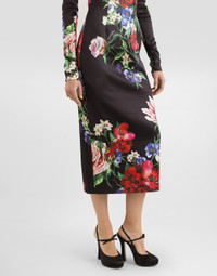 The Spring/Summer 2025 Women’s Collection is celebrating Italian beauty through bold and charismatic femininity. The 50s-inspired lingerie is the star, intermingling with fitted dresses, corsets and oversize trench coats. The iconic jackets have been updated with cropped cuts and modern inserts, while the floral prints add a romantic edge. The eveningwear shines with light fabrics and crystals, accompanied by look-defining accessories, from iconic bags to the cross earrings. Stretch silk satin calf-length round-neck dress with floral print: • Multi-colored • Round neck • Stitched conical cups • Long sleeves with zippered cuffs • Stretch silk satin lining • Rear zipper and hook-and-bar fastening • The piece measures 80 cm from the waist down on a size IT 40 • The model is 175 cm tall and wears a size IT 40 • Made in Italy The difference in the print placement that you may find on this product is a feature of Dolce&Gabbana’s “Handmade” pieces. A detail that makes every garment or accessory unique and exclusive. External composition: 96% Viscose 04% Spandex Internal composition: 92% Silk 08% Spandex