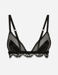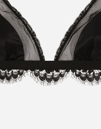 Silk satin and tulle soft-cup triangle bra with lace details: • Black • Lace inserts on the hem • Adjustable silk straps • Adjustable hook-and-eye fastenings on the center back • Made in Italy Care And Details External composition: 80% Silk 10% Spandex 10% Polyamide