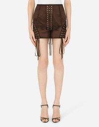 With its Foundation line, Dolce&Gabbana is building a sensual, sophisticated world. Skirts come to life in combinations of natural, warm and soft hues with corset inspiration. Made from shiny satin with lacing and draping, they emphasize the lines of women's bodies and all their beauty: • High-waisted • Partially lined • Rear zipper and hook-and-eye fastening • The piece measures 40 cm - 15.7 inches from the waist down on a size IT 40 • The model is 175 cm - 68.9 inches tall and wears a size IT 40 • Made in Italy Care And Details External composition: 65% Acetate 29% Polyamide 6% Spandex