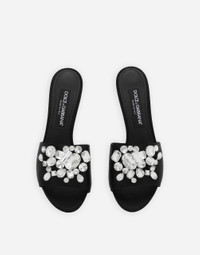 Satin mules with gemstone embellishment: • Black • 60-mm heel • Kidskin insole with branded label • Branded leather sole • Item comes with a branded dust bag • Made in Italy The Holiday collection is an extraordinary story that brings together two worlds: Dolce&Gabbana and the great stars from Hollywood’s Golden Age, who were recognized and admired for their wonderful dresses and extraordinarily glamorous looks. The designers are reinventing and making us dream in front of tailored pieces with breathtaking elegance and visual impact, a sparkling mood that will give everyone a modern, recognizable and unique allure on any occasion. External composition: 68% Viscose 32% Silk Internal composition: 61% Goatskin 27% Viscose 12% Silk