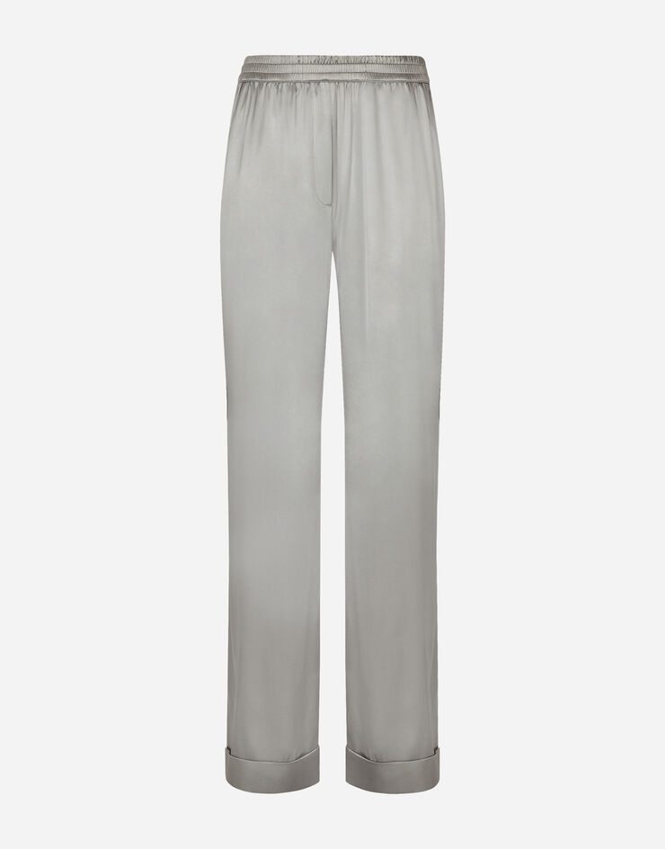 Stretch silk satin pajama pants with piping: • Stretch Dolce high waist • Front slant pockets • Faux fly on the center front • Inner leg: 80 cm • Hem: 30.4 cm • “Kim Dolce&Gabbana” inner label • The model is 175 cm tall and wears a size IT 40 • Made in Italy Care And Details External composition: 93% Silk 7% Spandex