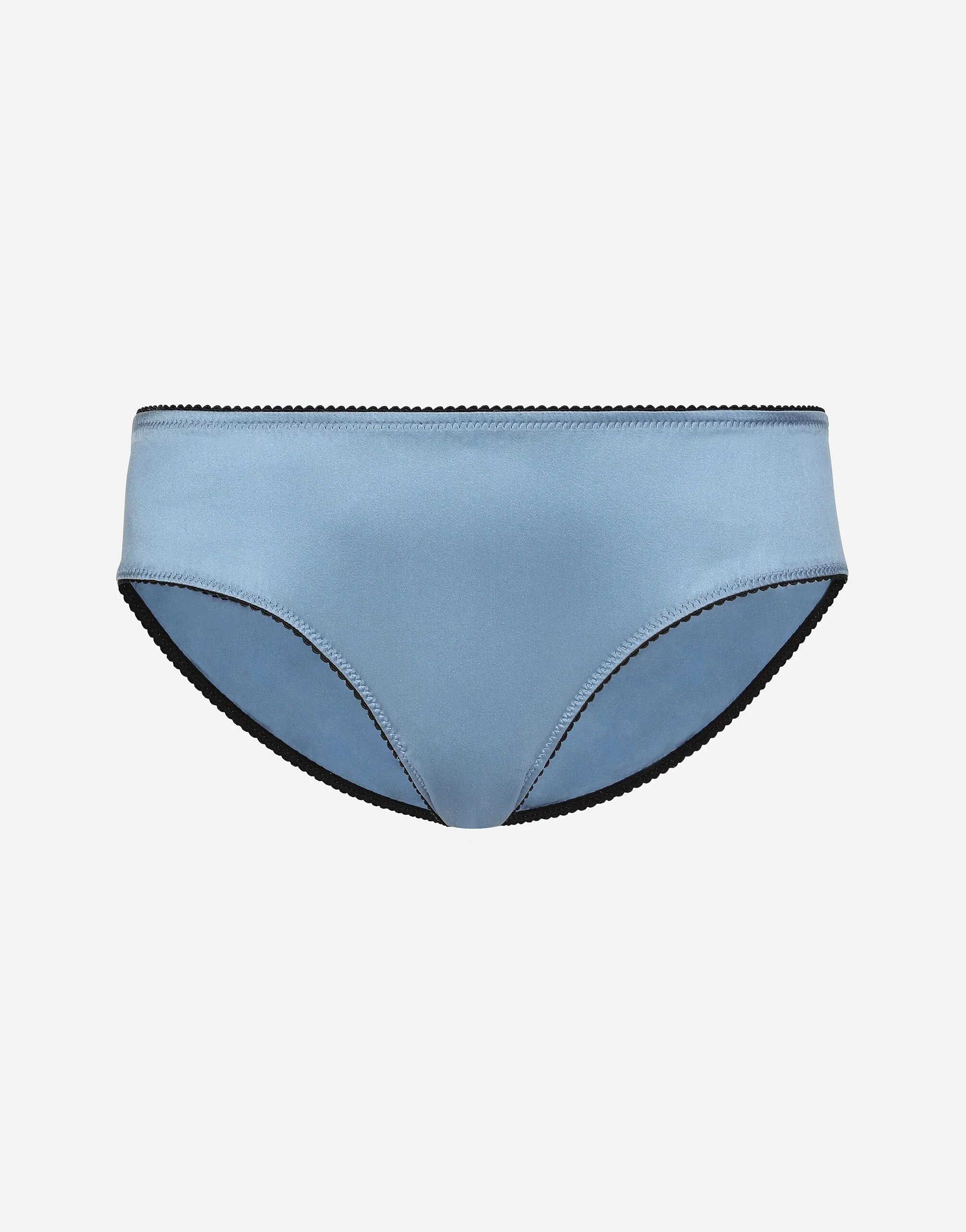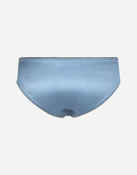 The lingerie collection is a mix of elegant and sensual pieces that flaunt timeless and ageless feminine allure, the distinctive, unmistakable feature of the Dolce&Gabbana woman. Stretch silk satin panties with contrasting stretch detailing: • Light blue • Elasticated leg openings on the front only • Regular fit • Made in Italy Given the product characteristics, unfortunately some items in the underwear category cannot be returned. For more information, please consult the Returns and Refunds section. External composition: 94% Silk 6% Spandex