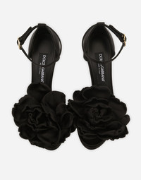 Satin platform sandals with flower detailing: • Black • 105-mm platform heel with DG logo • Kidskin insole with branded label • Branded leather sole • Item comes with a branded dust bag • Made in Italy Care And Details External composition: 65% Viscose 32% Silk 3% Goatskin Internal composition: 90% Goatskin 8% Viscose 2% Silk