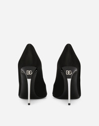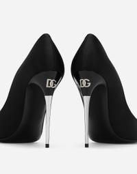 Classic and contemporary, these Lollo pumps come in satin. Featuring the new metal heel, they boast the DG logo. Satin pumps: • Black • 105-mm metal heel with DG logo • Kidskin insole with branded label • Branded leather sole • Item comes with a branded dust bag • Made in Italy External composition: 65% Viscose 35% Silk Internal composition: 100% Goatskin