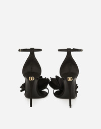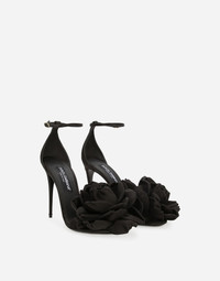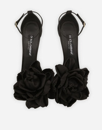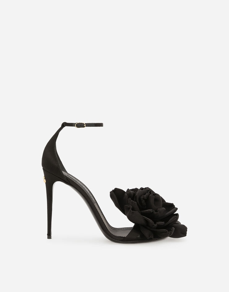 Satin sandals with flower detail: • Black • 105-mm heel with DG logo • Kidskin insole with branded label • Branded leather sole • Item comes with a branded dust bag • Made in Italy Care And Details External composition: 65% Viscose 32% Silk 3% Goatskin Internal composition: 90% Goatskin 8% Viscose 2% Silk