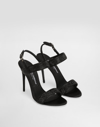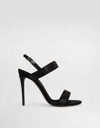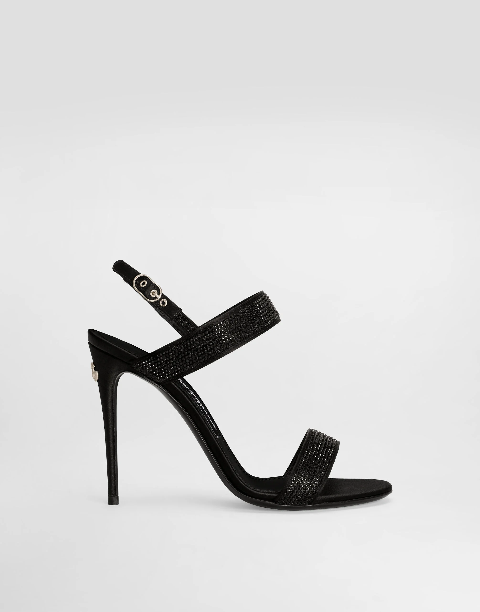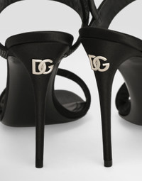 Satin Keira sandals with fusible rhinestones and the DG logo appliqué on the heel: • Fusible rhinestones on the satin upper • 105-mm heel • Kidskin insole with branded label • Branded leather sole • Made in Italy Care And Details External composition: 68% Viscose 28% Silk 4% Goatskin Internal composition: 70% Goatskin 25% Viscose 5% Silk