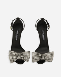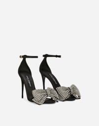 These Keira sandals come entirely in satin. Featuring rhinestone-detailed bow embellishment, they have the DG logo applique on the strap. Satin sandals with rhinestone-detailed bow: • Black • 105-mm heel • Kidskin insole with branded label • Branded leather sole • Item comes with a branded dust bag • Made in Italy External composition: 30% Viscose 20% Polyester 20% Glass 20% Silk 8% Copper 2% Zinc Internal composition: 75% Goatskin 17% Viscose 8% Silk