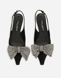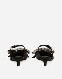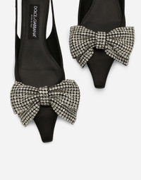 Elegant and refined, these Mun slingbacks come entirely in satin. Featuring rhinestone-detailed bow embellishment, they have the DG logo applique on the strap. Satin slingbacks with rhinestone-embellished bow: • Black • 30-mm heel • Kidskin insole with branded label • Branded leather sole • Item comes with a branded dust bag • Made in Italy External composition: 68% Viscose 32% Silk Internal composition: 82% Goatskin 10% Viscose 8% Silk