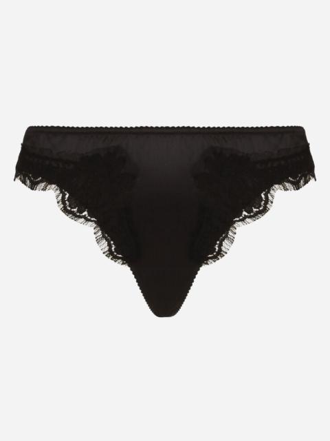 Satin thong with lace detailing
