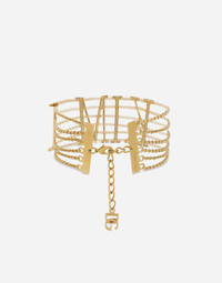 Semi-rigid “KIM” multi-chain choker: • Height: 5 cm • Adjustable length • Chain and clasp fastening • DG aglet • Nickel-free and hypoallergenic materials • Engraved logo • Made in Italy Care And Details Composition: 100% Brass