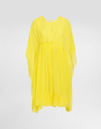 The Spring/Summer 2025 Warm Weather Collection is a vibrant ode to the beauty of the floral world, celebrating the elegance and vitality that lie at the heart of the brand’s DNA. Delicate, colorful bouquets dance across light dresses, skirts, trousers, and beachwear, infusing each piece with a sense of romance and freshness. Coordinated accessories, from scarves to headbands, add charm. An explosion of color and blooms, this collection captures the brand’s unmistakable spirit. Short silk chiffon caftan with drawstring: • Yellow • Boat neck • Wide sleeves • Unlined • Invisible zipper on the back • The piece measures 65 cm from the waist down below the drawstring on a size IT 40 • The model is 175 cm tall and wears a size IT 40 • Made in Italy External composition: 100% Silk Internal composition: 100% Silk