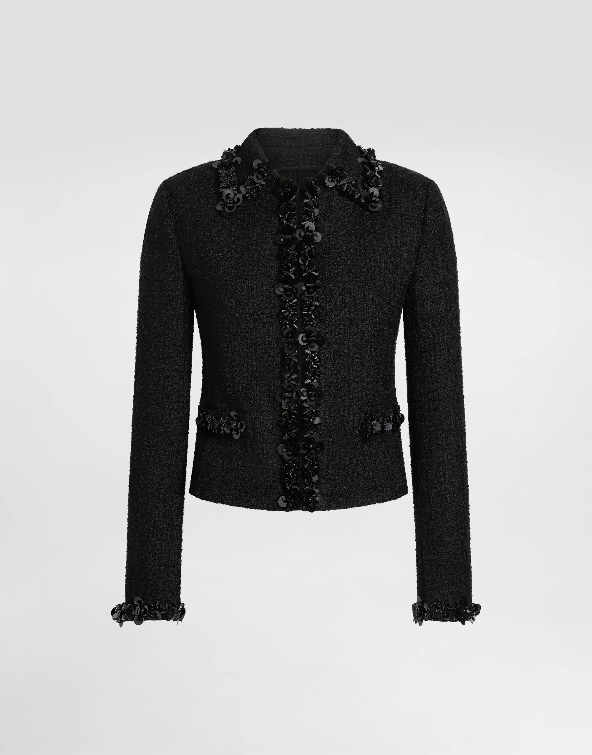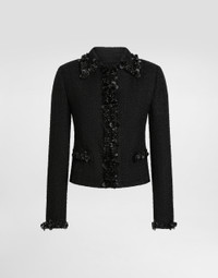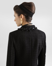 This short jacket combines elegance and practicality, perfect for a sophisticated and modern look. The minimalist design and choice of high-quality fabrics make this garment a must-have for any women's wardrobe. Short jacket in stretch mat: • Black • Faux welt pockets • Long sleeves • Closure with hooks • Unlined, canvassed with tulle • The model is 175 cm tall and wears size 40 IT • Made in Italy External Composition: 97% Virgin Wool, 2% Polyamide, 1% Elastane Internal Composition: 90% Polyamide, 10% Silk