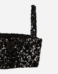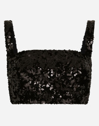 The Holiday collection is an extraordinary story that brings together two worlds: Dolce&Gabbana and the great stars from Hollywood’s Golden Age, who were recognized and admired for their wonderful dresses and extraordinarily glamorous looks. The designers are reinventing and making us dream in front of tailored pieces with breathtaking elegance and visual impact, a sparkling mood that will give everyone a modern, recognizable and unique allure on any occasion. Sequined crop top with straps: • Black • Square neckline • Sleeveless with shoulder straps • Cropped fit • Stretch silk crepe de chine lining • Zipper fastening at the back • The piece measures 15.5 cm from the center back on a size IT 40 • The model is 175 cm tall and wears a size IT 40 • Made in Italy External composition: 94% Polyamide 6% Spandex Internal composition: 91% Silk 9% Spandex