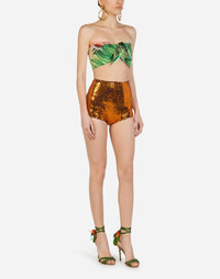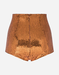 The high-waisted and iconic culotte pants by Dolce&Gabbana are covered in micro sequins. Wear them with transparent dresses to give a touch of glamour to your looks: • Tight fit • Lined with colored satin silk • Zip on the back • Made in Italy Care And Details Composition: 100% Polyester