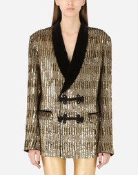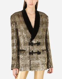 Sequined jacket with toggle fastenings