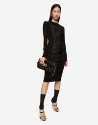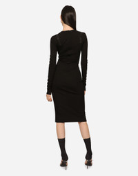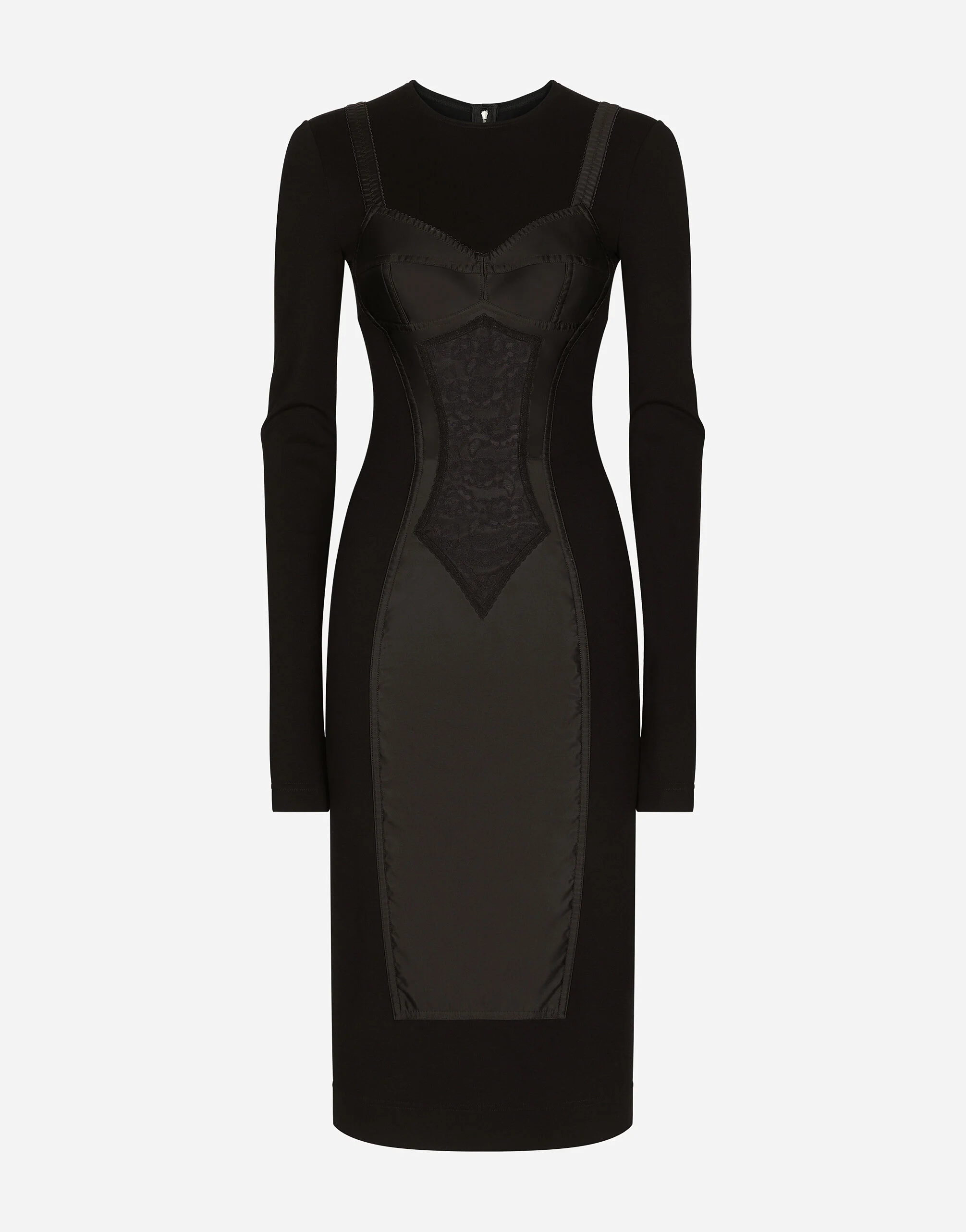 • Round neck • Long sleeves • Partially lined in cotton and silk satin • Rear zipper and hook-and-eye fastening • The piece measures 112.5 cm from the rear seam on a size IT 40 • The model is 175 cm tall and wears a size IT 40 • Made in Italy Care And Details External composition: 80% Polyamide 20% Spandex