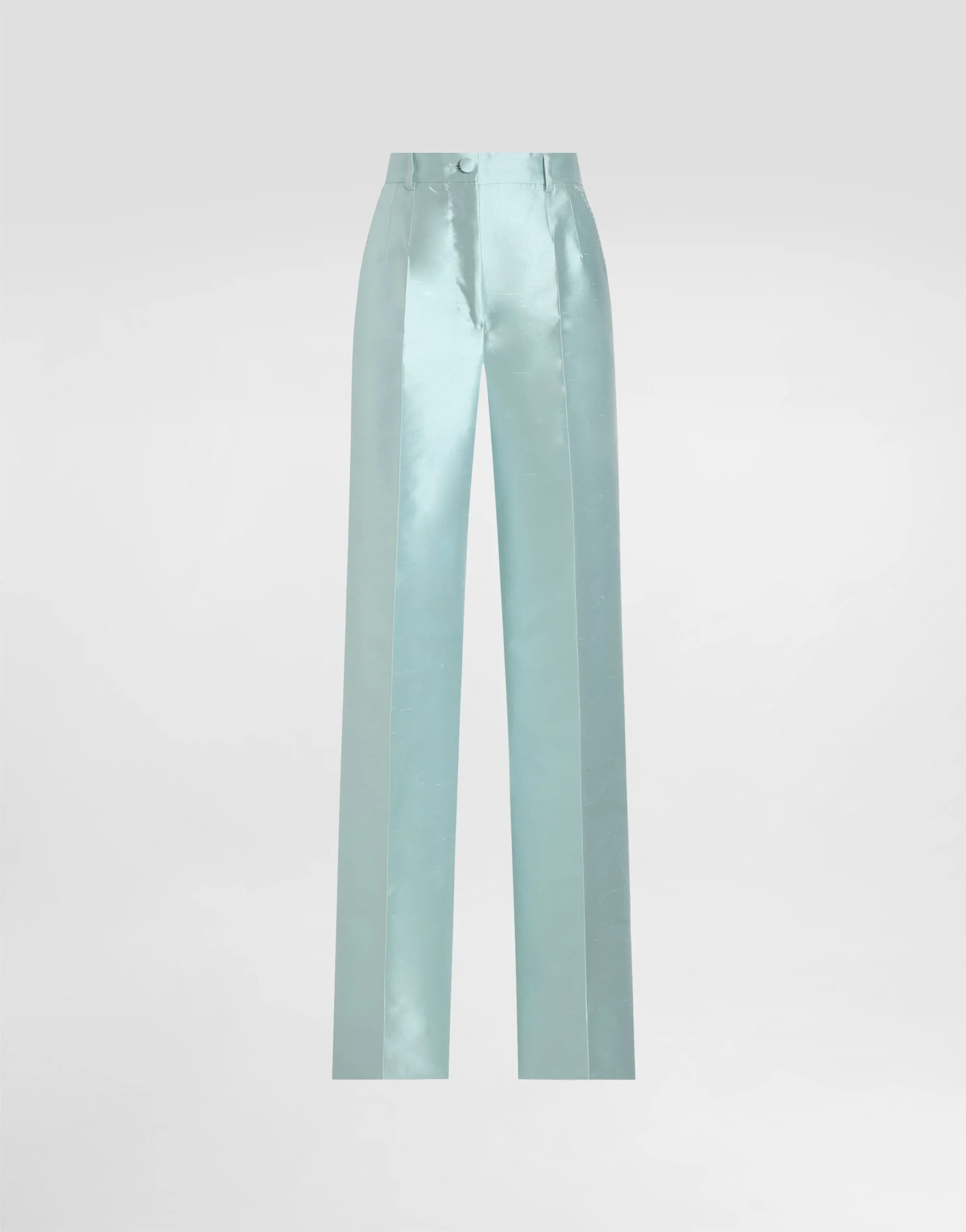 These shantung silk trousers are an essential for those looking for elegance and comfort. Perfect for any occasion, they stand out for their refined workmanship and sophisticated design. Shantung silk trousers: • Blue • Dolce waist with two front waist pleats • 4 cm high belt with belt loops • Back with double pleats • French pockets • Double welt pockets closed by buttonhole and button • Bottom 28 cm • The model is 175 cm tall and wears size 40 IT • Made in Italy External Composition: 100% Silk