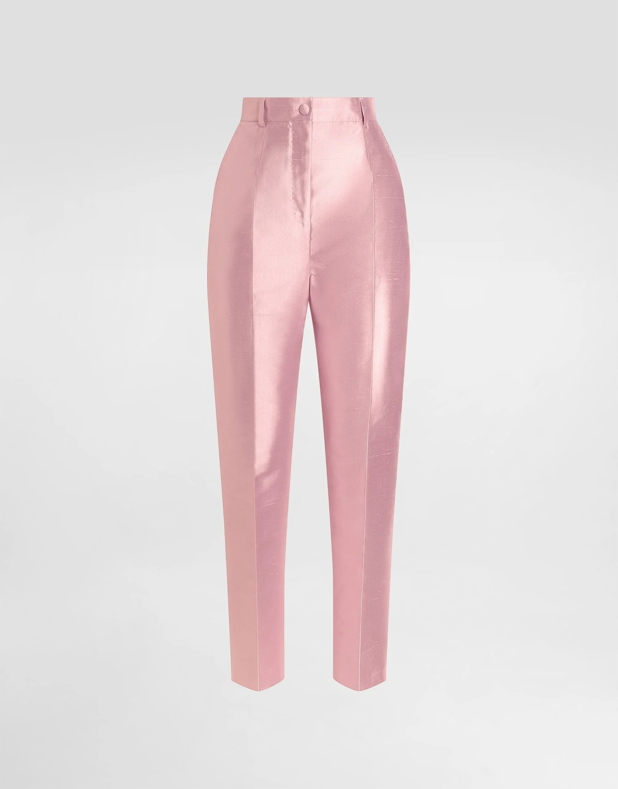 These classic silk shantung trousers offer a sleek and refined silhouette, perfect for any formal occasion or to add a touch of class to your everyday wardrobe. Silk shantung pants: • Pink • Cigarette line • Dolce waist • Center back length 74 cm on size 40 IT • The model is 175 cm tall and wears size 40 IT • Made in Italy External Composition: 100% Silk