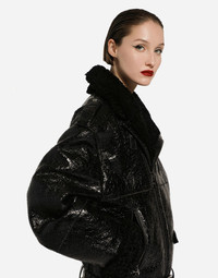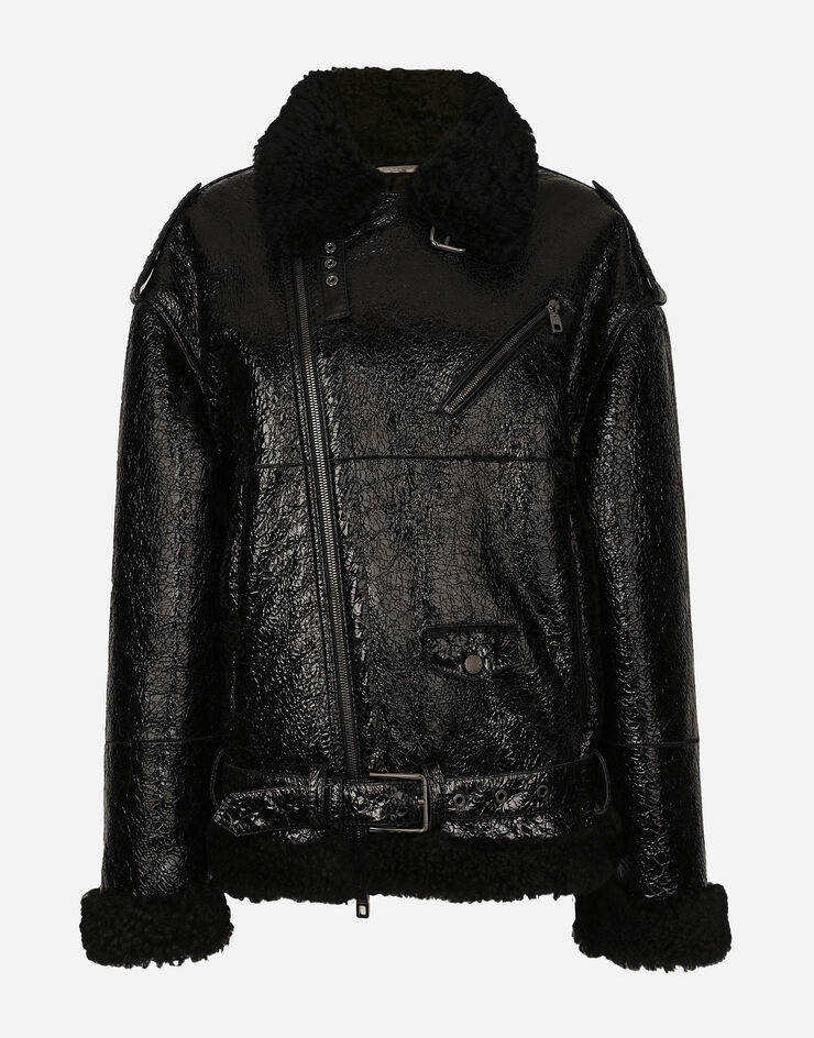 Shearling jacket: • Black • High neck with buckled strap • Long sleeves • Side zipper fastening and belted hem • The piece measures 65 cm from the center back on a size IT 40 • The model is 175 cm tall and wears a size IT 40 • Made in Italy Care And Details External composition: 100% Lambskin Internal composition: 100% Lambskin