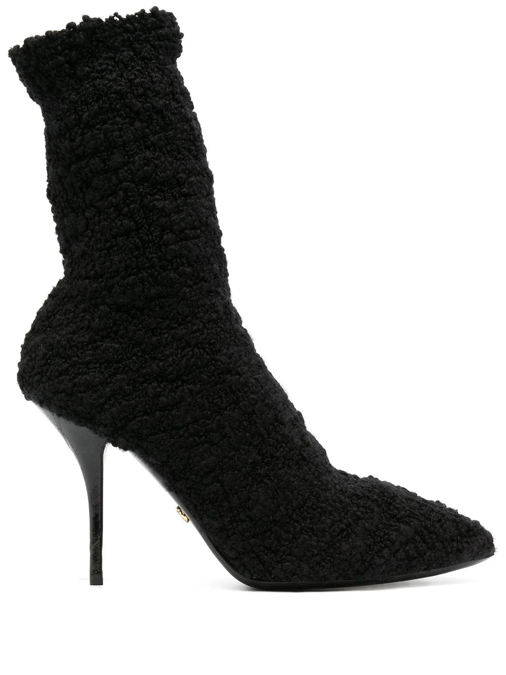 shearling stiletto heel boots The best of both worlds. These shearling trim boots by Dolce & Gabbana, with their statement pointed toe and sophisticated stiletto heel, tick all of our boxes. Warmth and style, winning. Made in Italy Composition Outer: Fabric 100% Lining: Fabric 100% Sole: Calf Leather 100% SIZE & FIT Measurement CIRCUMFERENCE 9.84 in(25 cm) HEEL 3.74 in(9.5 cm) HEIGHT 7.28 in(18.5 cm)