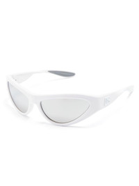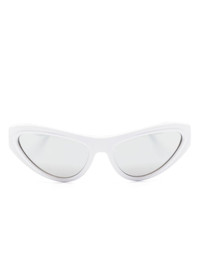 shield-frame tinted sunglasses Highlights - White - Acetate - Shield frame - Tinted lenses - Tonal logo plaque - Straight arms - Curved tips - These glasses come with a protective case. Made in Italy Composition Acetate 100% SIZE & FIT Measurement Arm Length 5.11 in(13 cm) Bridge Width 0.62 in(1.6 cm) Lens Diameter 2.36 in(6 cm) Total Width 5.51 in(14 cm)