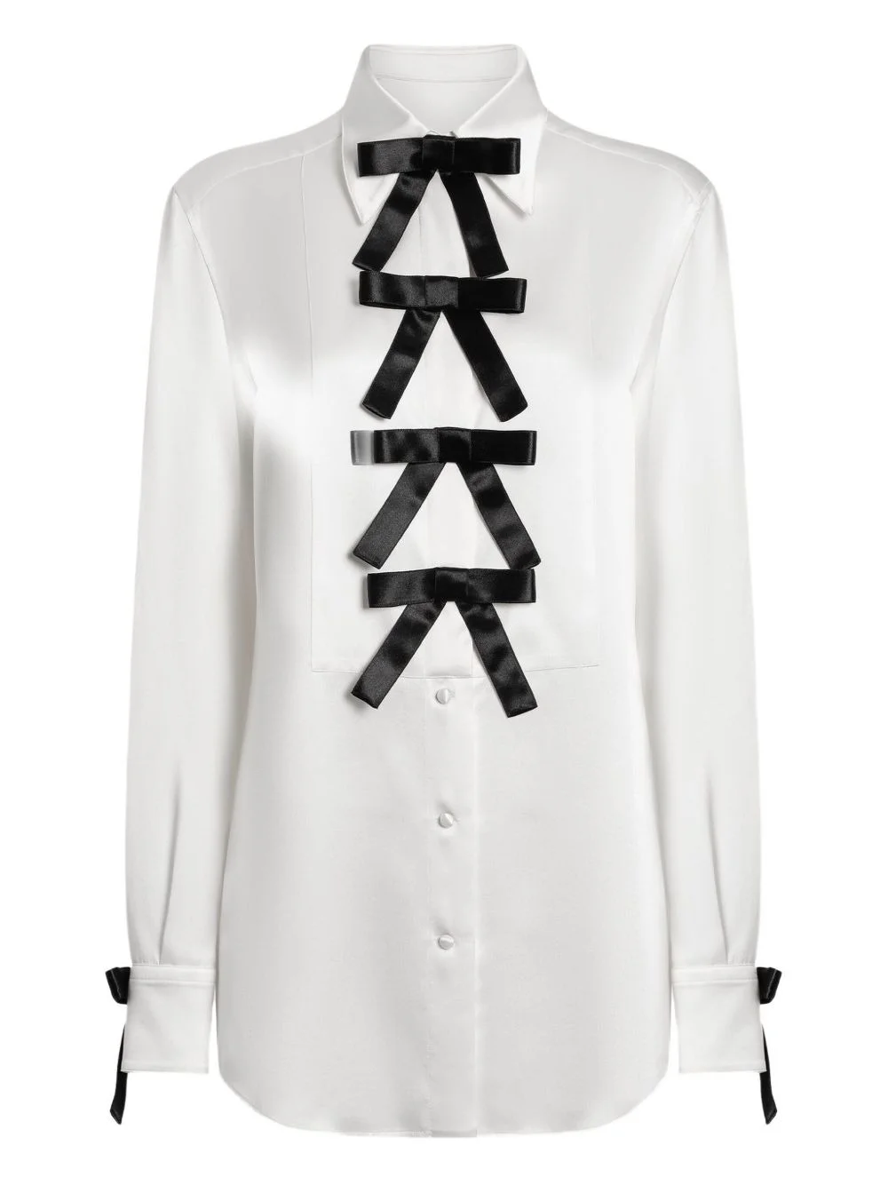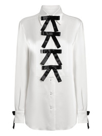 bow-embellished satin blouse Highlights - White - Contrast bow detailing - Button fastening - Long sleeves - Adjustable cuff bows Made in Italy Composition Silk 100% Washing instructions Read Manufacturer Guidelines