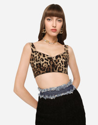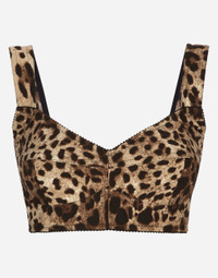 Short bustier top in charmeuse with leopard print