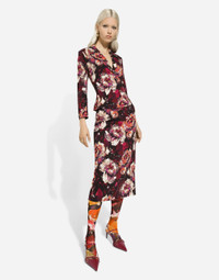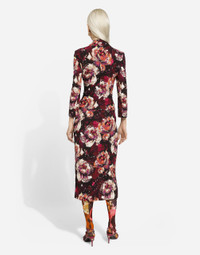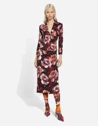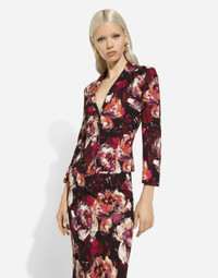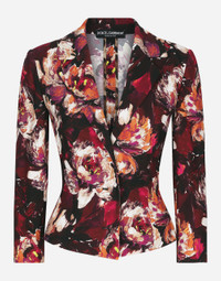 The spirit of the 1960s is taking over the new Flower Power collection. The focus is a head-to-toe floral look built around pairing and layering rose, anemone and floral bouquet maxi-prints. A cosmopolite poised between playful and sexy, this women interprets the austerity and elegance of the 1960s, harking back to boldly opulent imagery that here at Dolce&Gabbana is condensed and reinterpreted through silhouettes, ample proportions and airy shapes, bringing femininity and sensuality to the forefront. Short cady jacket with peony print: • Multi-colored • Single-breasted • Notched lapels • 3/4 sleeves • Leopard-print stretch silk satin lining • Button fastenings • The piece measures 51 cm from the center back on a size IT 40 • The model is 175 cm tall and wears a size IT 40 • Made in Italy The difference in the print placement that you may find on this product is a feature of Dolce&Gabbana’s “Handmade” pieces. A detail that makes every garment or accessory unique and exclusive. External composition: 97% Viscose 3% Spandex