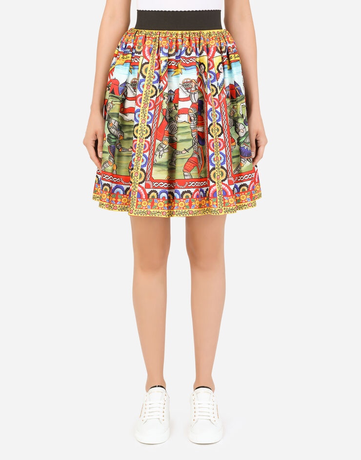 Dolce&Gabbana has reworked its Carretto and Puppet theme and enhanced it with a riot of bright colors. A tribute to the most authentic side of Sicily stands out on this silk circle skirt that flaunts vibrant colors: • High-waisted with a stretch waistband • Unlined • Rear zipper and hook-and-eye fastening • The model is 175 cm - 68.9 inches tall and wears a size IT 40 • Made in Italy Care And Details External composition: 100% Silk