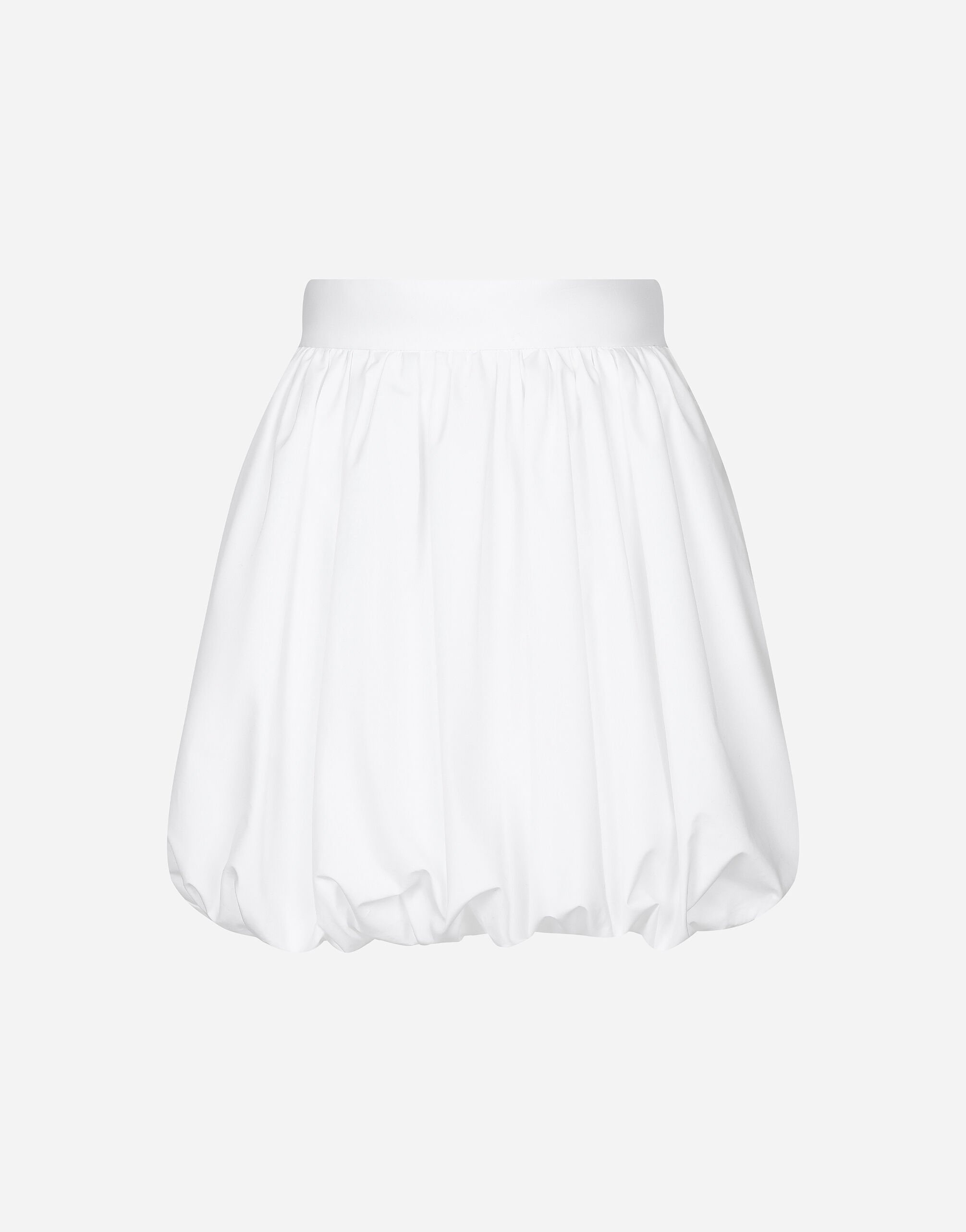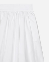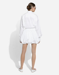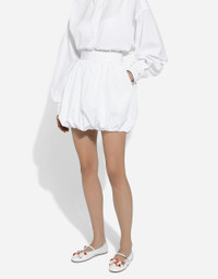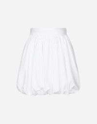 The Italian summers of the 1960s, the candid purity of white, the sophisticated elegance of the jet set of that era. The imagery of the FW24/25 Capri Collection encapsulates all this flawlessly. The pieces range from floaty poplin silhouettes or sack-style dresses and skirts, to brocade outerwear and floral-inlay fabric shirts. The iconic bags – the Logo Bag, the Sicily Bag and the Dolce Box – complement the looks, while the shoes come embroidered with designs inspired by the crystal-clear sea of Capri. Short cotton poplin balloon skirt: • White • High-waisted • Lined • Rear zipper and hook-and-eye fastening • The piece measures 42 cm from the waist down on a size IT 40 • The model is 175 cm tall and wears a size IT 40 • Made in Italy External composition: 100% Cotton Internal composition: 100% Cotton
