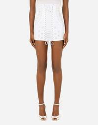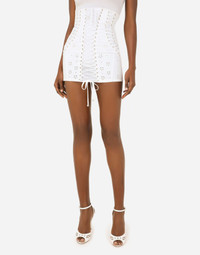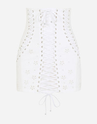 The spirit and flavor of the Tradizione collection aims to be the common thread that runs through the roots of Italian culture that deserves to be recounted in order to pass on history via creativity and fashion. The use of a simple color, white that illuminates, gives this embroidered cotton skirt with corset details, lacing and eyelets an extremely feminine and contemporary look: • High-waisted • Unlined • Rear zipper and hook-and-eye fastening • The piece measures 45 cm - 17.7 inches from the waist down on a size IT 40 • The model is 175 cm - 68.9 inches tall and wears a size IT 40 • Made in Italy Care And Details External composition: 97% Cotton 3% Spandex
