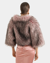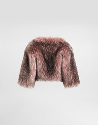 The Spring/Summer 2025 Women’s Collection is celebrating Italian beauty through bold and charismatic femininity. The 50s-inspired lingerie is the star, intermingling with fitted dresses, corsets and oversize trench coats. The iconic jackets have been updated with cropped cuts and modern inserts, while the floral prints add a romantic edge. The eveningwear shines with light fabrics and crystals, accompanied by look-defining accessories, from iconic bags to the cross earrings. Short faux fur jacket: • Pink • Wide neckline • 3/4 sleeves • Quilted silk satin lining • Hook-and-eye fastening on the front • The piece measures 40 cm from the center back on a size IT 40 • The model is 175 cm tall and wears a size IT 40 • Made in Italy External composition: 70% Acetate 23% Modacrylic 7% Polyester Internal composition: 52% Polyester 48% Silk