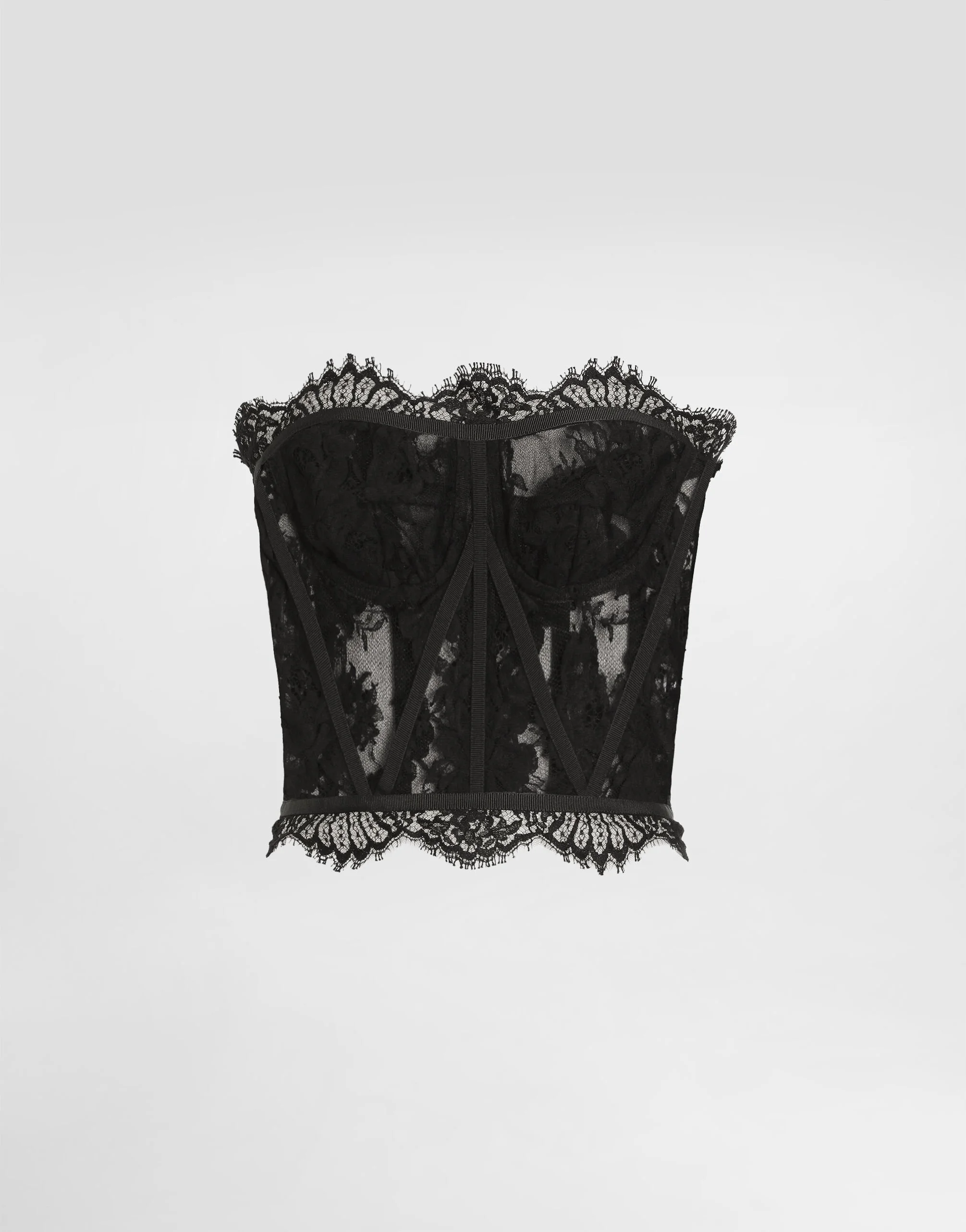 Workmanship, elegance and excellence are the essence of the Dolce&Gabbana collections. Chantilly lace bustier: • Sweetheart neckline • Sleeveless • Structured with underwiring and reinforcement • Layered with stretch tulle • Back closure with zipper and small hook • The garment measures 42 cm – 16.5 inches from the collar topstitching in size 40 IT • Model is 175 cm – 68.9 inches tall and wears a size 40 IT • Made in Italy Composition: 74% Cotton 26% Polyamide