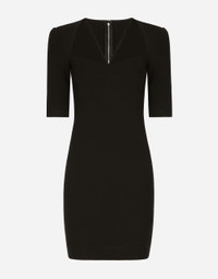 Short stretch jersey dress with 3/4 sleeves: • Black • Square neckline with branded elasticated detailing • 3/4 sleeves • Unlined • Rear zipper and hook-and-eye fastening • The piece measures 45 cm from the waist down on a size IT 40 • The model is 175 cm tall and wears a size IT 40 • Made in Italy Care And Details External composition: 75% Viscose 17% Polyamide 8% Spandex