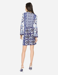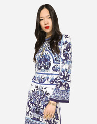 Majolica tiles, which have provided the inspiration for the Blu Mediterraneo line, are Dolce&Gabbana’s tribute to the world of Italian artisans and art. The brand does this by reworking one of its signature themes. This sensual silk charmeuse sheath dress celebrates and emphasizes beauty, originality and the handmade: • Round neck • Long sleeves • Unlined • The piece measures 89.5 cm from the rear seam on a size IT 40 • The model is 175 cm tall and wears a size IT 40 • Made in Italy Care And Details External composition: 100% Viscose