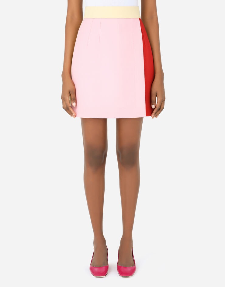 Dolce&Gabbana has drawn inspiration from the 60s in creating this vibrant and colorful collection that features a mix-and-match of pairings in an endless play on contrasts and color blocking, to create garments for witty and feminine women. This stretch viscose cady skirt will have you falling in love with its flared silhouette and vibrant color pairings: • High-waisted • Stretch silk crepe de chine lining • Rear zipper and hook-and-eye fastening • The piece measures 45 cm - 17.7 inches from the waist down on a size IT 40 • The model is 175 cm - 68.9 inches tall and wears a size IT 40 • Made in Italy Care And Details External composition: 75% Virgin Wool 24% Viscose 1% Spandex