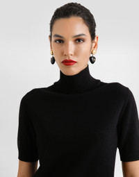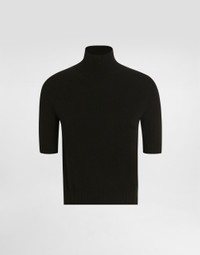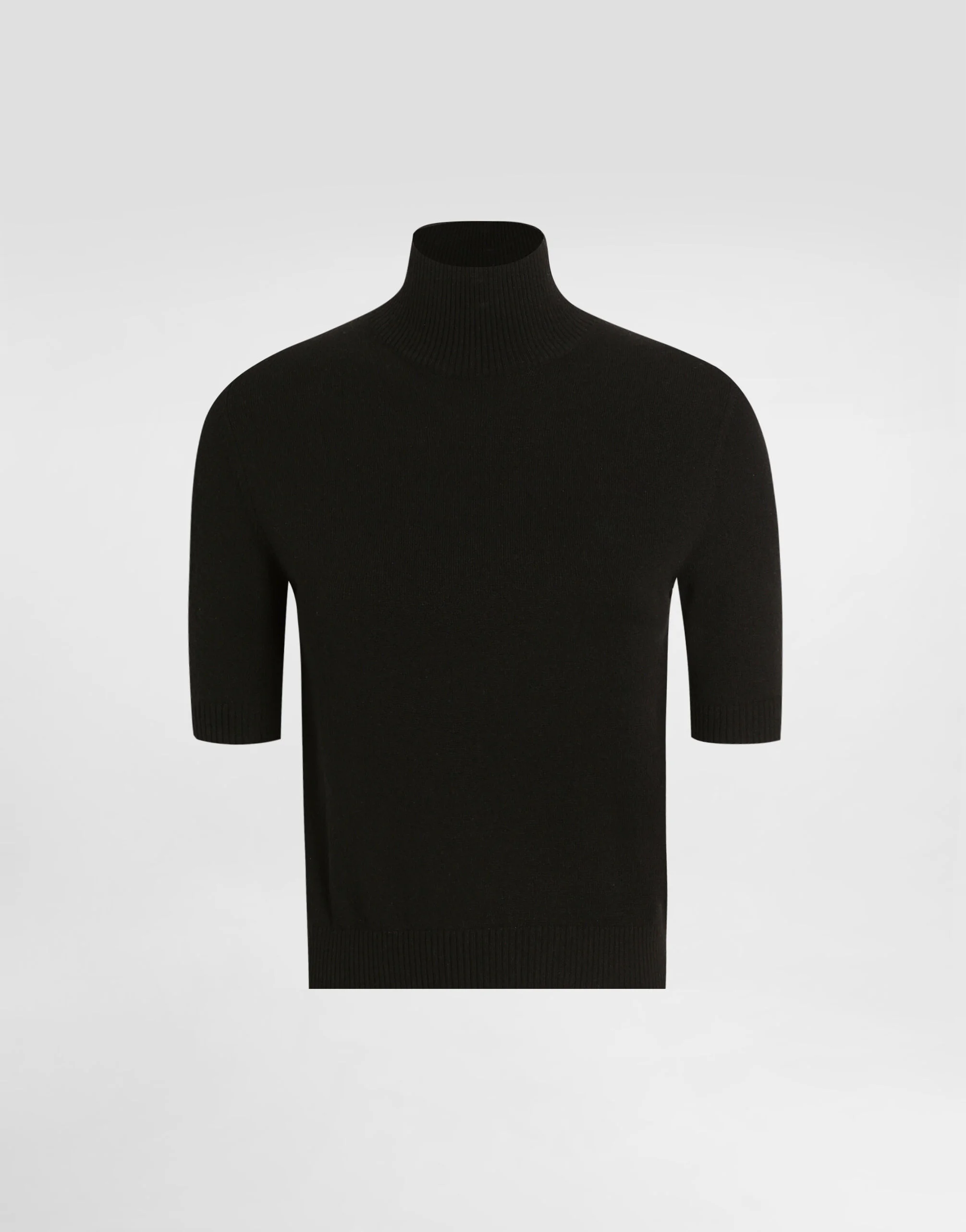 This cashmere pullover is the perfect balance between elegance and comfort. With its turtleneck design and short sleeves, it is ideal for those looking for a versatile garment to wear on different occasions. The cashmere workmanship makes it extremely soft and warm, perfect for cooler days. Cashmere pullover: • Black • Crew neck • Short sleeves • Bottom width 50 cm on size 40 IT • The model is 175 cm tall and wears size 40 IT • Made in Italy External Composition: 100% Cashmere