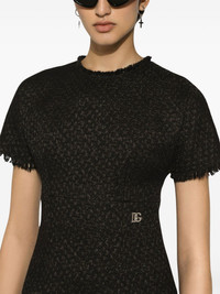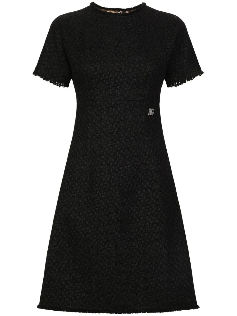 DNA applique-logo boucle mini dress Highlights - Black - Boucle construction - Flared design - Applique logo - Frayed edge - Crew neck - Concealed rear zip fastening - Short sleeves - Above-knee length - Straight hem Made in Italy Composition Outer: Virgin Wool 67%, Viscose 27%, Polyamide 6% Inner: Polyester 97%, Spandex/Elastane 3% SIZE & FIT Measurement SLEEVE LENGTH 11.02 in(28 cm) HIPS 33.85 in(86 cm) LENGTH 37.4 in(95 cm) WAIST 26.37 in(67 cm)