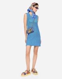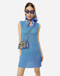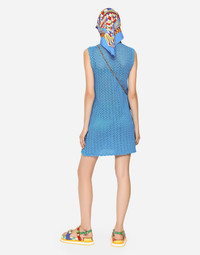Short mesh-stitched crochet dress: • Turquoise • 5-gauge knit • Removable slip dress • Button fastening at the back of the neck • The piece measures 76 cm from the shoulder seam on a size IT 40 • The model is 175 cm tall and wears a size IT 40 • Made in Italy Care And Details External composition: 100% Cotton